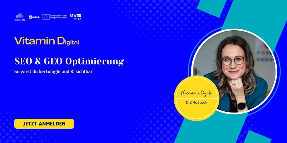Willst du, dass deine Website nicht nur gefunden wird, sondern auch von modernen Suchmaschinen und KI-Systemen richtig verstanden und empfohlen wird? In diesem praxisnahen Webinar lernst du, wie du klassische SEO-Strategien mit GEO-Optimierung kombinierst, um deine Inhalte sichtbar, verständlich und vertrauenswürdig zu machen.